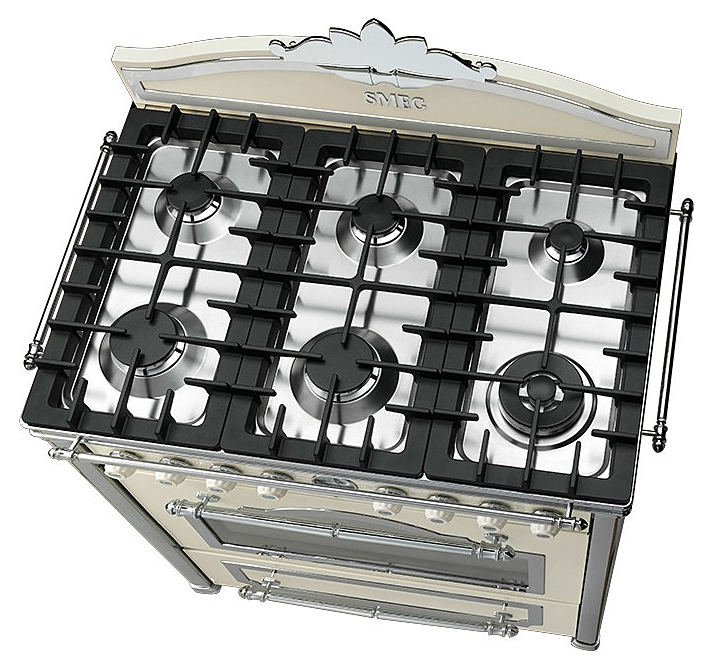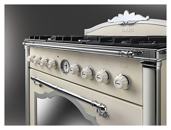 Оригинальная варочная плита в ретро-стиле Smeg CC9GPX соответствует строгим итальянским стандартам, что является залогом надежности и долговечности при повседневной эксплуатации. Представленная модель обладает тщательно продуманной конфигурацией, которая включает в себя шесть конфорок разной мощности и один вместительный духовой шкаф. При помощи удобных поворотных переключателей установить необходимый режим нагрева не составит большого труда. Такая замечательная варочная плита станет достойным украшением вашей любимой кухни. Общая информация