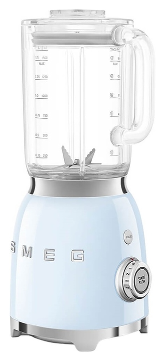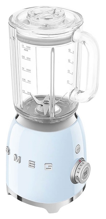 Стационарный блендер SMEG BLF03PBEU предназначен для измельчения пищевых продуктов и приготовления муссов, смузи, фраппе, соусов, коктейлей, фруктовых и овощных пюре в домашних условиях. Модель оснащена кабелем питания с вилкой и электромеханической панелью управления. Корпус выполнен из нержавеющей стали с глянцевым покрытием красного цвета и накладными объемными серебристыми литерами логотипа, основание, манжета и переключатель – из пластика с покрытием пастельного голубого оттенка, кувшин и крышки – из высокопрочного полимера Tritan Renew без содержания вредных компонентов, ножи – из высококачественной нержавеющей стали. Комплектация:
