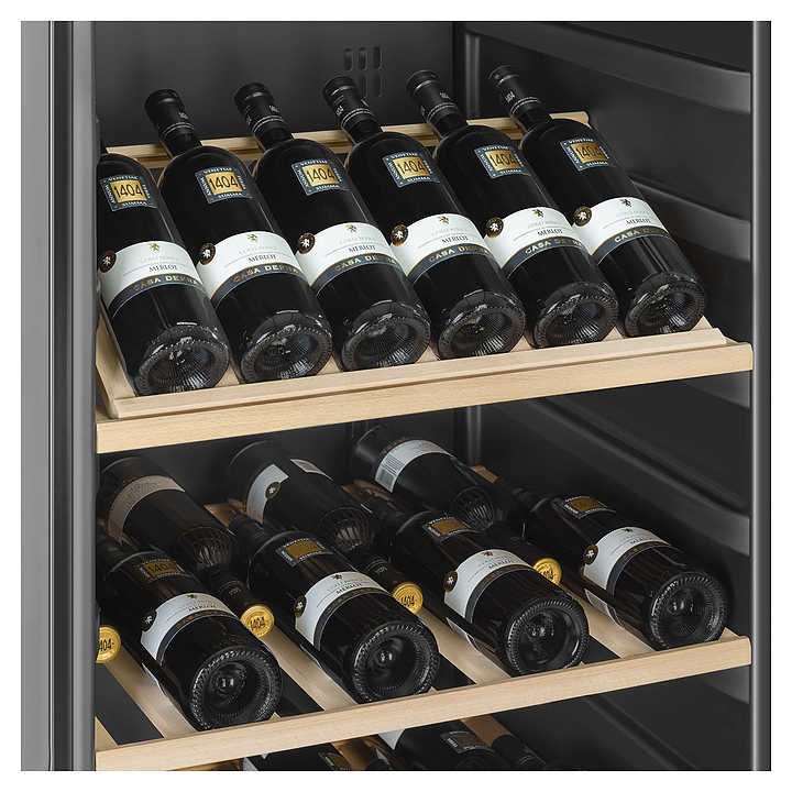 Винный шкаф SMEG SCV115GS предназначен для охлаждения, хранения при оптимальных условиях и демонстрации бутилированного вина различных сортов в гостиницах и домашних условиях. Модель оснащена холодильной камерой с 2 температурными зонами, интегрированной в основание стационарной полкой, правосторонней распашной дверью с длинной трубчатой вертикальной рукояткой, обзорным окном, расположенными внутри камеры сенсорной панелью управления и светодиодным 7-сегментным цифровым дисплеем с белой подсветкой индикации. Боковины выполнены из стали с антикоррозийным покрытием порошковой краской черного цвета, рама двери, цокольная панель и рукоятка – из нержавеющей стали с серебристой поверхностью и обработкой против отпечатков пальцев, задняя панель – из металла, остекление двери– из стекла Stopsol, выдвижные полки – из массива древесины светлой породы. В комплект поставки входят 5 съемных полок с направляющими для бутылок, ключ к замку, инструкция по эксплуатации, гарантийный талон и заводская упаковка. Особенности: