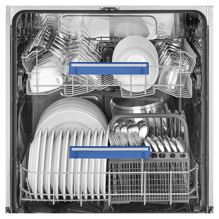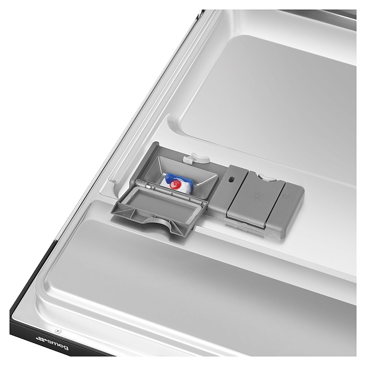 Встраиваемая посудомоечная машина SMEG STL262Dпредназначена для гигиенической обработки и последующей сушки различной посуды в домашних условиях. Модель оснащена откидной дверью, верхним и нижним моечными рукавами, дозаторами моющих и ополаскивающих средств, устройством умягчения воды, узлом фильтров, кабелем питания с евровилкой, расположенной на верхнем торце двери электронной панелью управления с функциональными клавишами, светодиодными сигнальными лампами и цифровым дисплеем с белой подсветкой индикации. Внутренняя облицовка камеры и фильтр выполнены из высококачественной нержавеющей стали, верхняя крышка – из пластика, дверь с оцинкованным покрытием, панель управления черного цвета.