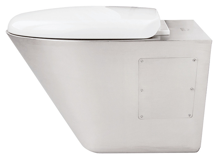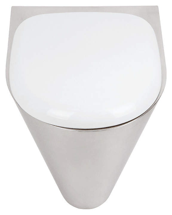 Подвесной унитаз Oceanus 1-003.1(P) используется в санитарных узлах предприятий общественного питания и торговли, вокзалов, автозаправок и других мест массового пользования. Модель оснащена закрытым нисходящим к основанию кожухом с боковыми отверстиями со съемными панелями для удобства технического обслуживания. Корпус выполнен из высококачественной нержавеющей стали марки AISI 304 серебристого оттенка с матовой поверхностью, сиденье – из белого пластика. Комплектация: