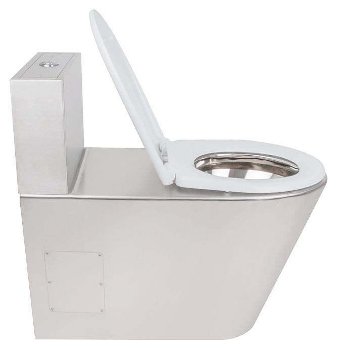 Напольный унитаз-компакт Oceanus 1-010.1(S) используется в санитарных узлах предприятий общественного питания и торговли, вокзалов, автозаправок и других мест массового пользования. Модель оснащена сливным бачком и закрытым нисходящим к основанию кожухом с боковыми отверстиями со съемными панелями для удобства технического обслуживания. Корпус выполнен из высококачественной нержавеющей стали марки AISI 304 серебристого оттенка с матовой поверхностью, сиденье – из белого пластика. Комплектация: