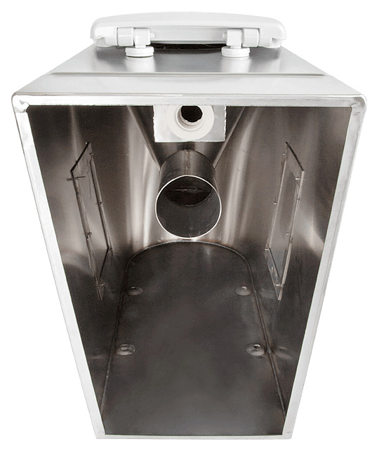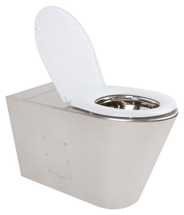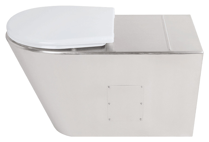 Напольный унитаз Oceanus 1-011.1(P) используется в санитарных узлах предприятий общественного питания и торговли, вокзалов, автозаправок и других мест массового пользования. Модель оснащена закрытым нисходящим к основанию кожухом с боковыми отверстиями со съемными панелями для удобства технического обслуживания. Корпус выполнен из высококачественной нержавеющей стали марки AISI 304 серебристого оттенка с матовой поверхностью, сиденье – из белого пластика. Комплектация: