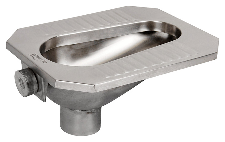Напольный унитаз Oceanus 4-002.1 типа чаша Генуя используется в санитарных узлах предприятий общественного питания и торговли, вокзалов, автозаправок и других мест массового пользования. Модель оснащена 8-угольной опорной плоскостью с нескользящими рельефными подставками для ног. Корпус выполнен из высококачественной нержавеющей стали марки AISI 304 серебристого оттенка с матовой поверхностью. В комплект поставки входит манжета. Особенности: