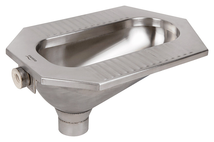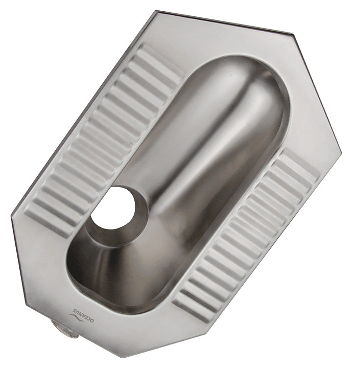Напольный унитаз Oceanus 4-006.1 типа чаша Генуя используется в санитарных узлах предприятий общественного питания и торговли, вокзалов, автозаправок и других мест массового пользования. Модель оснащена 7-угольной опорной плоскостью с нескользящими рельефными подставками для ног. Корпус выполнен из высококачественной нержавеющей стали марки AISI 304 серебристого оттенка с матовой поверхностью. В комплект поставки входит манжета. Особенности: