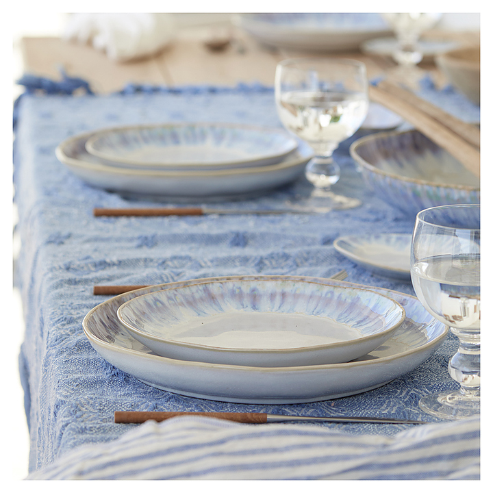 Тарелка Costa Nova LNP151-RIA(LNP151-00918V) коллекции Brisa используется в барах, ресторанах, на других предприятиях общественного питания и в домашних условиях для подачи различных блюд. Емкость круглой формы оснащена плавно расширенным к кромке бортом. Изделие выполнено из высококачественной керамики с текстурной поверхностью в голубых тонах Ria Blue и коричневым кантом на кромке. Цена указана за 1 шт. Особенности: