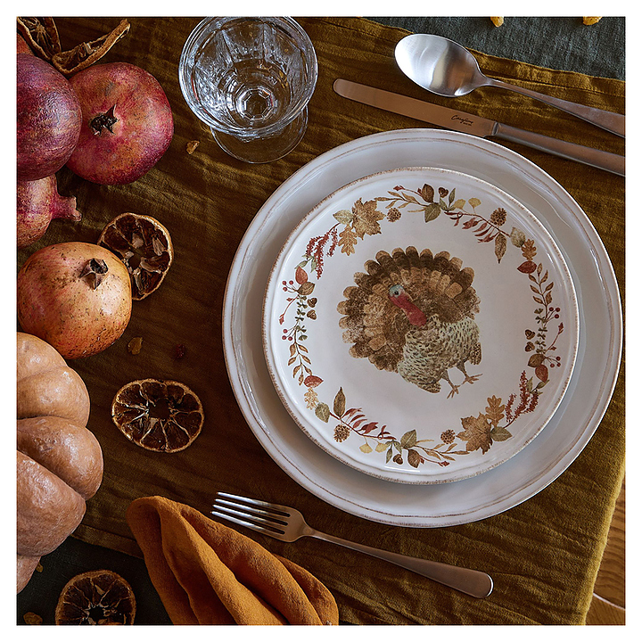 Тарелка Casafina NAP225-CRM(NAP225-01023B) коллекции Plymouth используется в кафе, ресторанах, на других предприятиях общественного питания и в домашних условиях для подачи различных блюд. Емкость круглого сечения оснащена плавно расширенным к кромке бортом. Изделие выполнено из высококачественной керамики с поверхностью кремового оттенка, декором рисунком индюка с окантовкой паттерном из древесных веточек с плодами и листьями в коричневых тонах. Особенности: