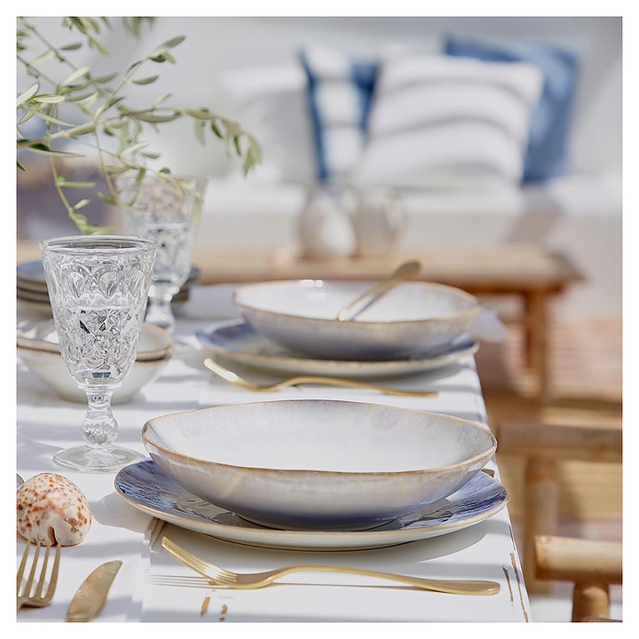 Тарелка Costa Nova GOP201-SAL(GOP201-00918R) коллекции Brisa используется в барах, ресторанах, на других предприятиях общественного питания и в домашних условиях для подачи различных блюд. Емкость овальной формы оснащена плавно расширенным к кромке бортом. Изделие выполнено из высококачественной керамики с текстурной поверхностью в белой гамме Sal и коричневым кантом на кромке. Цена указана за 1 шт. Особенности:
