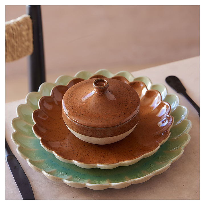 Тарелка Costa Nova 2KEP191E-CAN(2KEP191E-00322Q) коллекции Marrakesh используется в барах, ресторанах, на других предприятиях общественного питания и в домашних условиях для подачи различных блюд. Емкость круглой формы оснащена плавно расширенным бортом с декоративными рельефными углублениями и волнистой кромкой. Изделие выполнено из высококачественной керамики, внешняя сторона борта с матовой бежевой поверхностью, внутренняя поверхность с глянцевой отделкой коричного оттенка Canelle. Цена указана за 1 шт. Особенности:
