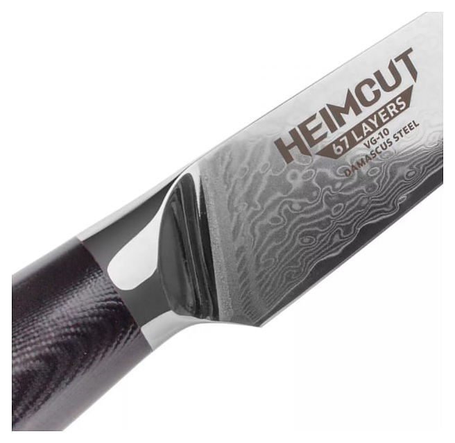 Нож HEIMCUT Triangle Damascus HC/ENERGY-SL-20 предназначен для заготовки продуктов на предприятиях общественного питания. Рукоять изготовлена из стеклотекстолита G-10, который отличается износостойкостью, прочностью и твердостью. Клинок выполнен из стали VG-10 в обкладках из дамаска, устойчивой к коррозии, долговечной, прочной, пластичной, длительно сохраняющей остроту режущей кромки и первоначальный внешний вид во время всего периода эксплуатации. Особенности: