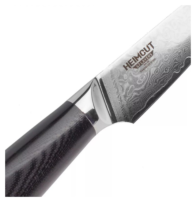 Универсальный нож HEIMCUT Triangle Damascus HC/ENERGY-UT-13 предназначен для очистки и заготовки продуктов на предприятиях общественного питания. Рукоять изготовлена из стеклотекстолита G-10, который отличается износостойкостью, прочностью и твердостью. Клинок выполнен из стали VG-10 в обкладках из дамаска, устойчивой к коррозии, долговечной, прочной, пластичной, длительно сохраняющей остроту режущей кромки и первоначальный внешний вид во время всего периода эксплуатации. Особенности: