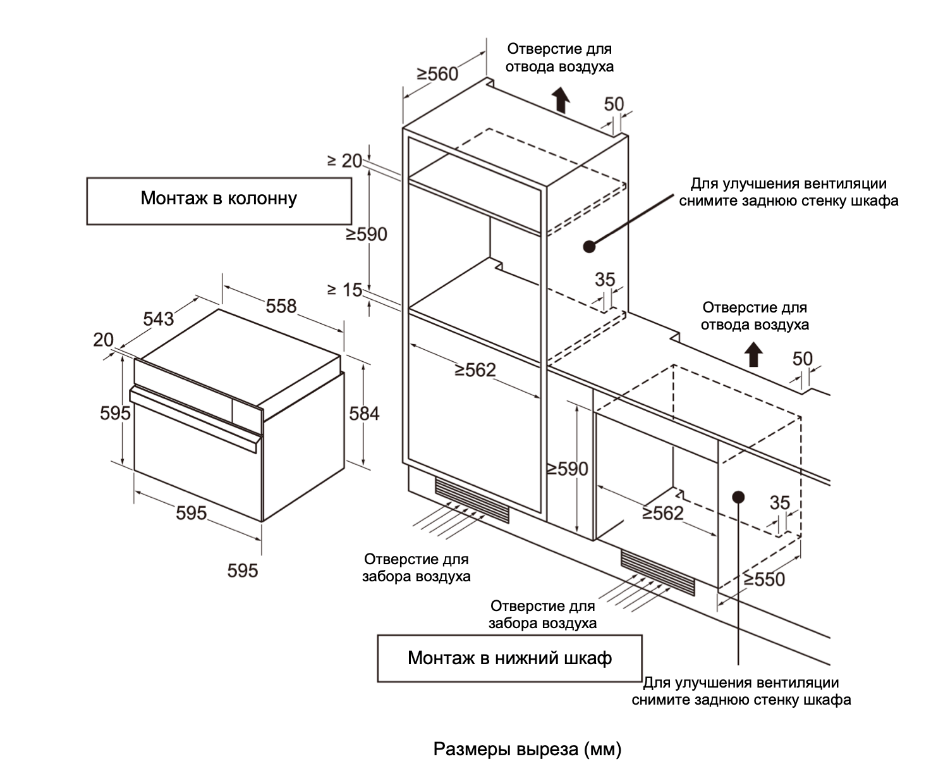 Монтаж в колонну либо под столешницу