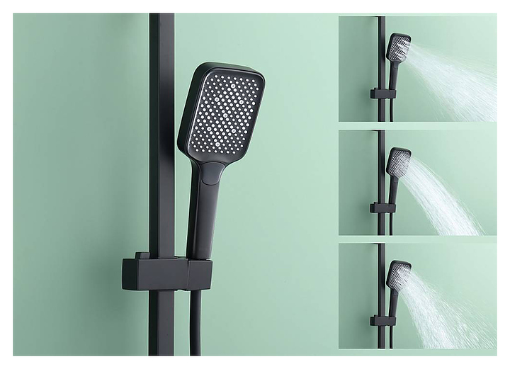 Душевая система Raglo R02.24.06 предназначена для подачи горячей и холодной воды в ванных помещениях. Модель оснащена регулируемой по высоте душевой штангой, прямоугольными верхним душем и ручной лейкой. Керамический картридж обеспечивает плавный ход рычага смесителя, контроль и точность при выборе напора и температуры воды. Изделие выполнено из высококачественной латуни, отличающейся прочностью, долговечностью и устойчивостью к перепадам температур, шланг - из ПВХ. В комплект поставки входят верхний душ, душевая штанга с держателем лейки, ручной душ, смеситель и шланг. Особенности: