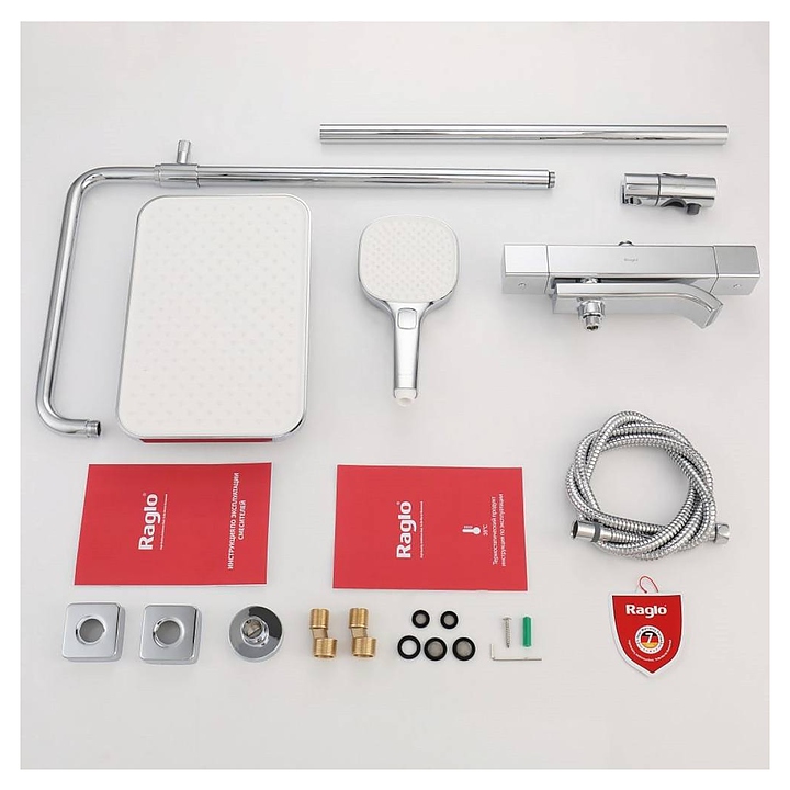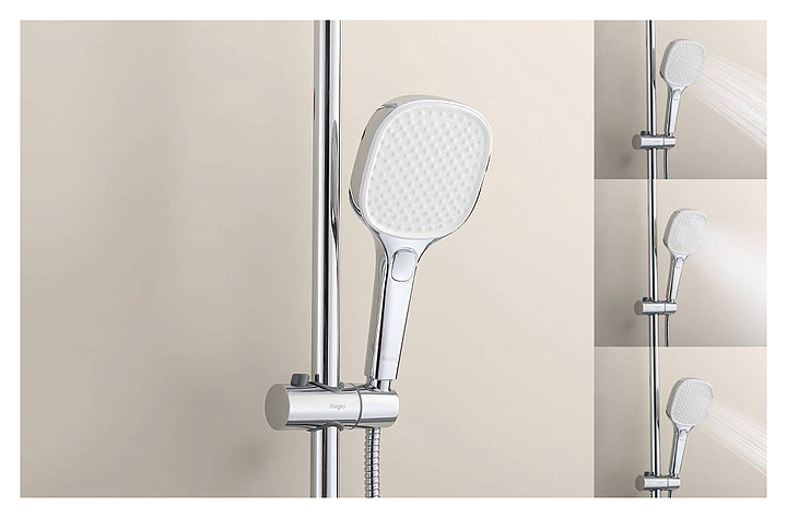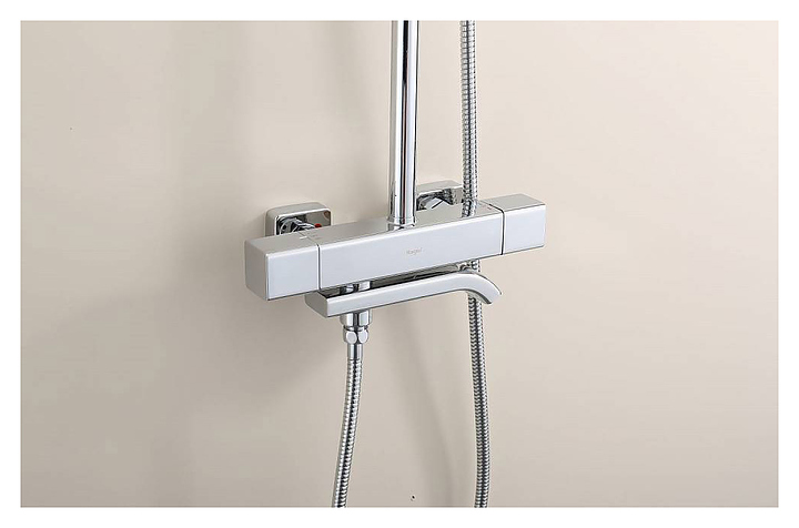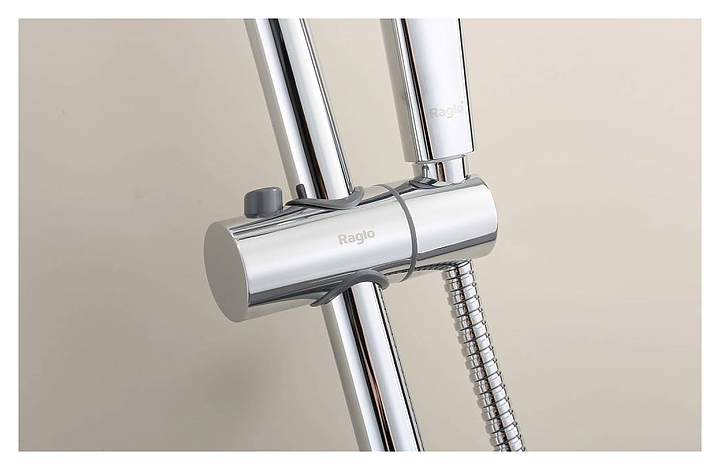 Душевая система Raglo R22.26 предназначена для подачи горячей и холодной воды в ванных помещениях. Модель оснащена регулируемой по высоте душевой штангой, прямоугольными верхним душем и ручной лейкой. Термостатический картридж обеспечивает подачу воды заданной температуры, что исключает ожоги. Изделие выполнено из высококачественной латуни, отличающейся прочностью, долговечностью и устойчивостью к перепадам температур, шланг - из металла. В комплект поставки входят верхний душ, душевая штанга с держателем лейки, ручной душ, смеситель и шланг. Особенности: