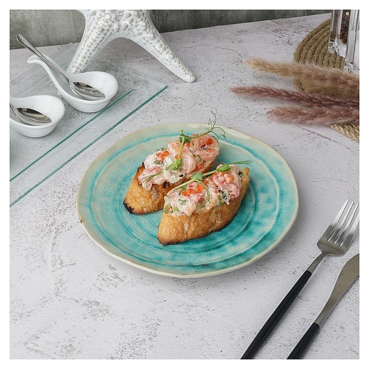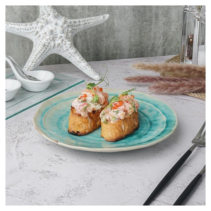 Тарелка P.L. Proff Cuisine Blue Frutti di Mare P.L. [1] QB23132001 используется в барах, ресторанах, на других предприятиях общественного питания и в домашних условиях. Предназначена для подачи различных блюд. Изделие выполнено из высококачественной керамики, покрытой реактивной глазурью. Особенности: