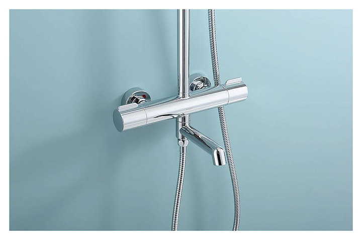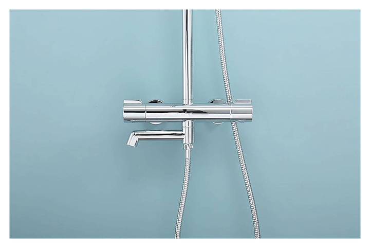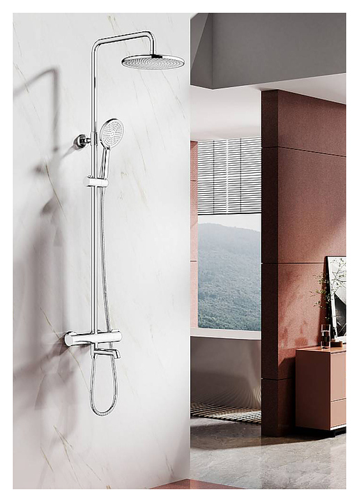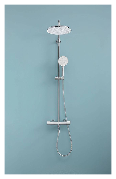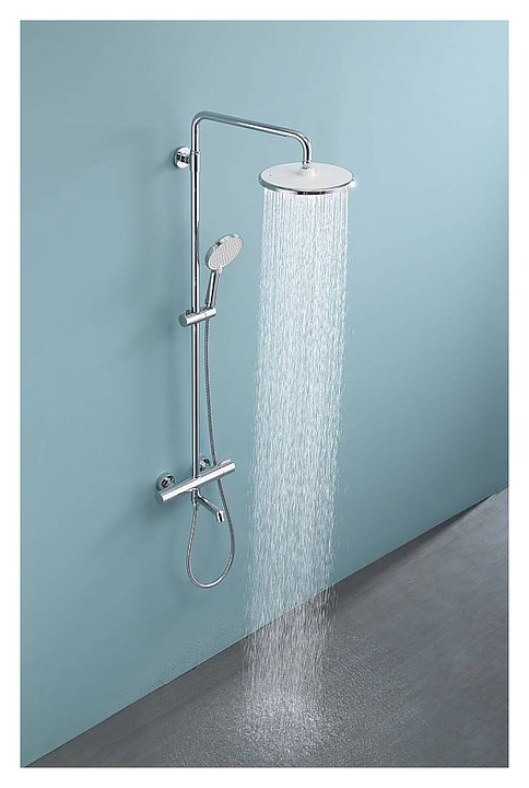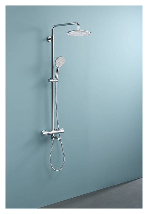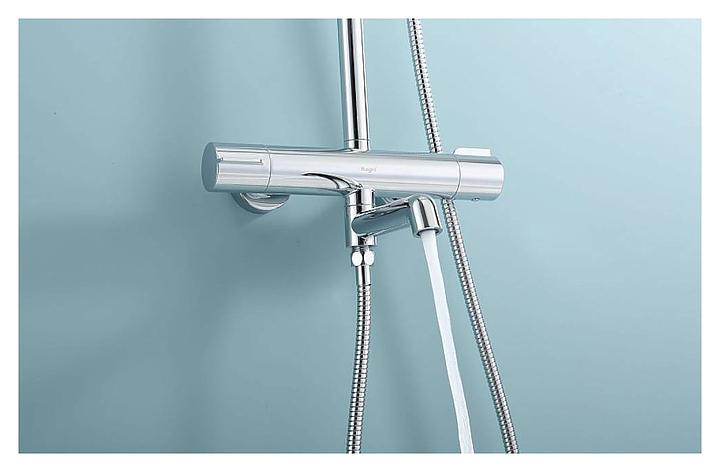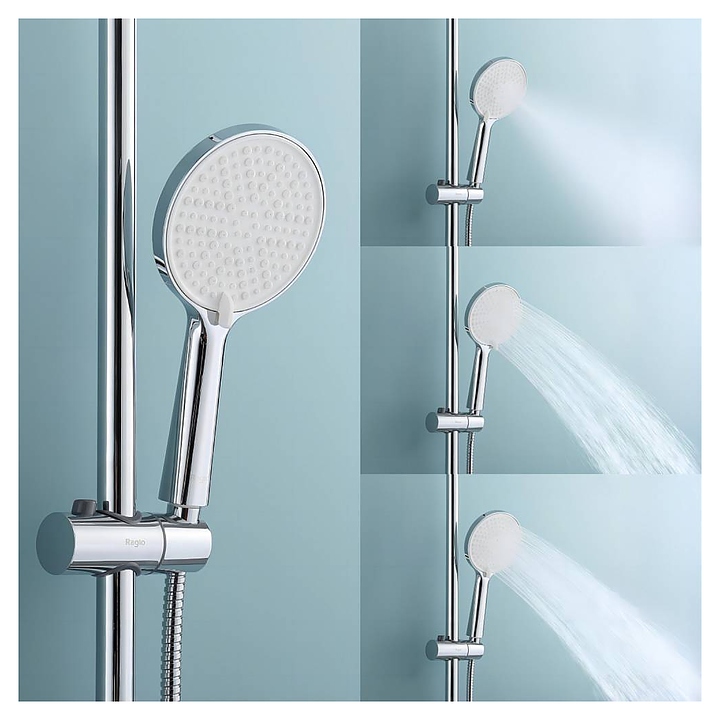 Душевая система Raglo R20.26 предназначена для подачи горячей и холодной воды в ванных помещениях. Модель оснащена регулируемой по высоте душевой штангой, круглыми верхним душем и ручной лейкой. Термостатический картридж обеспечивает подачу воды заданной температуры, что исключает ожоги. Излив оснащен аэратором, который создает мягкую струю без брызг. Изделие выполнено из высококачественной латуни, отличающейся прочностью, долговечностью и устойчивостью к перепадам температур, шланг - из металла, аэратор - из силикона. В комплект поставки входят верхний душ, душевая штанга с держателем лейки, ручной душ, смеситель и шланг. Особенности: