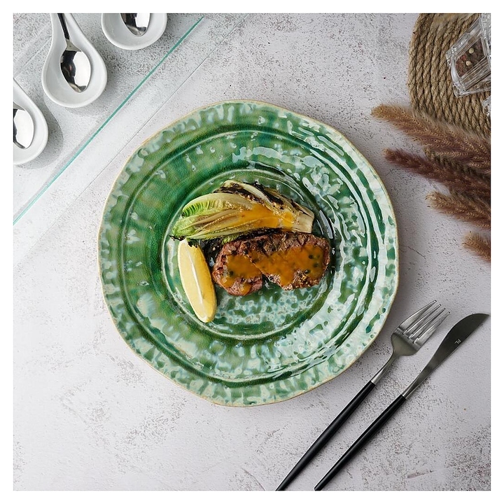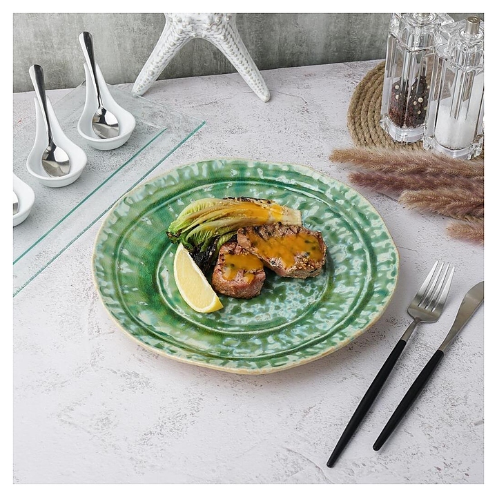 Тарелка P.L. Proff Cuisine Green Frutti di Mare P.L. [1] QB23152002 используется в барах, ресторанах, на других предприятиях общественного питания и в домашних условиях. Предназначена для подачи различных блюд. Изделие выполнено из высококачественной керамики, покрытой реактивной глазурью. Особенности: