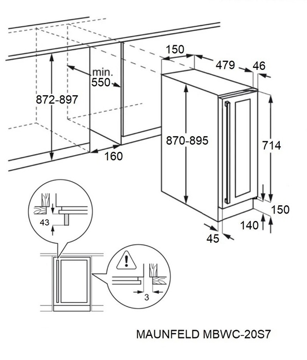 Винный шкаф Maunfeld MBWC-20S7 предназначен для хранения при оптимальных условиях и предпродажной демонстрации бутилированного вина различных сортов в барах, ресторанах, специализированных магазинах, подсобных складских помещениях, а также домашних условиях. Модель оснащена холодильной камерой с правосторонней распашной дверью, длинной уплощенной вертикальной рукояткой, 7 уровнями интегрированных направляющих для бутылок, расположенной внутри камеры панелью управления с функциональными сенсорными клавишами и светодиодным дисплеем с белой подсветкой индикации. Корпус выполнен из стали с антикоррозийным покрытием черного цвета, дверь с полным фронтальным остеклением без винтового крепежа из прозрачного стекла с дымчатой тонировкой, внутренняя облицовка камеры черного цвета. В комплект поставки входят крепеж для рукоятки, инструкция по эксплуатации, гарантийный талон и заводская упаковка. Особенности: