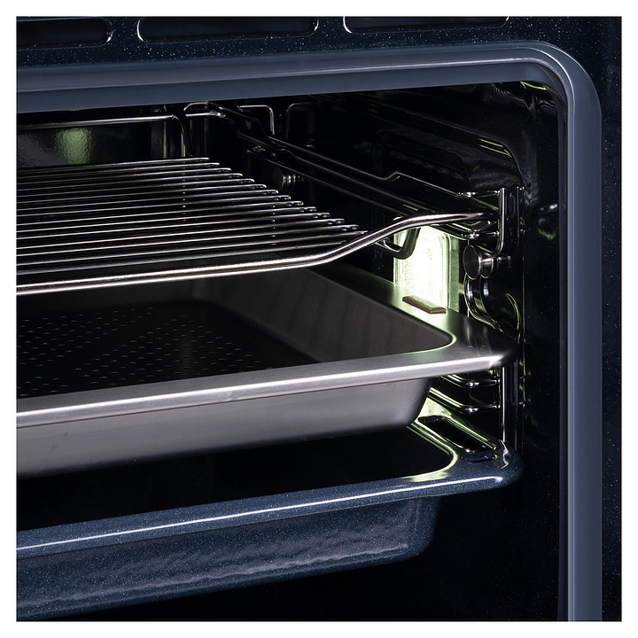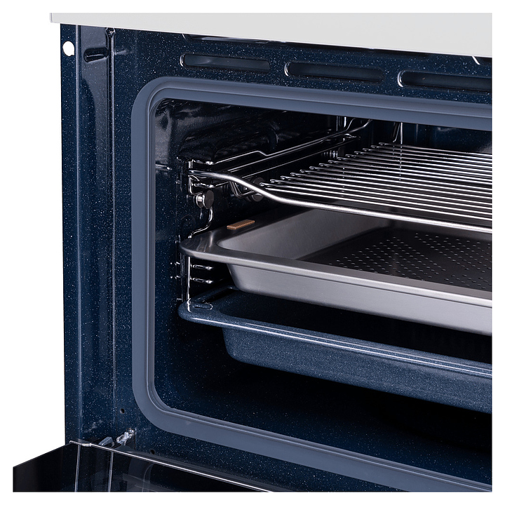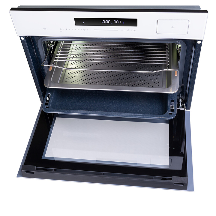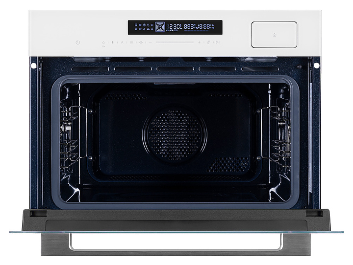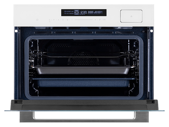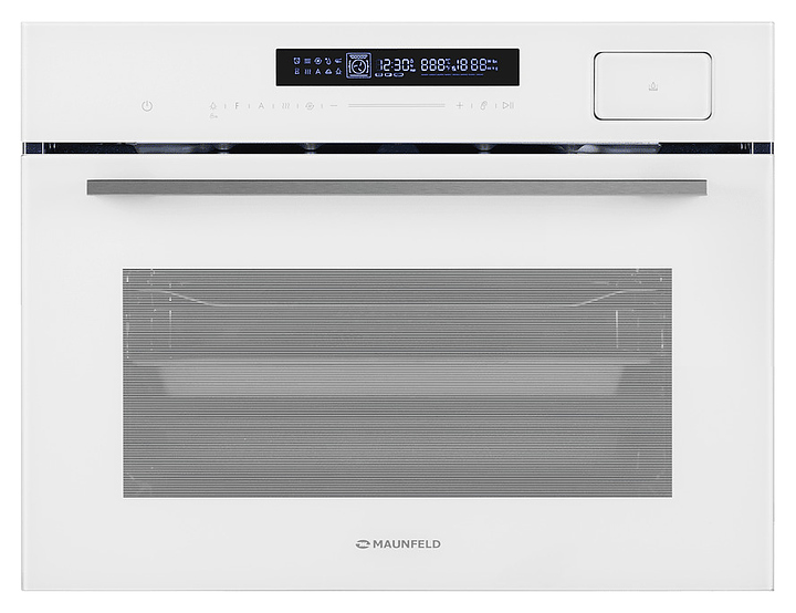 Встраивамый электрический духовой шкаф Maunfeld MCMO5016STGW предназначен для приготовления большого ассортимента блюд в домашних условиях. Модель оснащена камерой с расположенными в задней стенке кольцевым нагревательным элементом и вентилятором, верхним и нижним нагревательными элементами, верхним грилем, парогенератором, 2 боковыми стойками с 3 уровнями направляющих для противней, откидной дверью со смотровым окном, горизонтальной рукояткой, кабелем питания с вилкой, расположенной в верхней части фронта панелью управления с сенсорными функциональными клавишами и информативным светодиодным дисплеем с белой подсветкой индикации. Корпус выполнен из высококачественной стали с покрытием фронта белого цвета и полным остеклением фронтальных панелей без винтового крепежа прозрачным стеклом, боковые стойки, телескопические направляющие, решетка для гриля – из стали с хромированной поверхностью, сплошной противень – из стали с эмалированным покрытием, перфорированный противень – из нержавеющей стали, рукоятка – из металла с сатинированной поверхностью цвета нержавеющей стали.