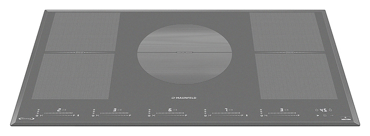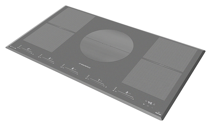 Индукционная варочная панель Maunfeld CVI905SFLGR Inverter предназначена для приготовления большого ассортимента блюд в домашних условиях. Принцип работы основан на непосредственном нагреве металлической посуды создаваемыми высокочастотным магнитным полем индуцированными вихревыми токами. Модель оснащена 5 варочными зонами, кабелем питания, сенсорной панелью управления и 5 светодиодными цифровыми дисплеями с белой подсветкой индикации. Рабочая поверхность выполнена из высококачественной износостойкой стеклокерамики Nippon (Япония) серого цвета с фацетированной кромкой.