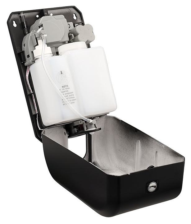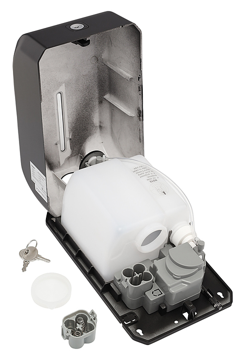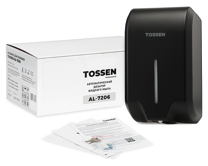 Автоматический дозатор TOSSEN AL-7206 PB коллекции Midnight предназначен для размещения и дозированной подачи мыла или жидких антисептиков в общественных санитарных узлах гостиниц, предприятий общепита, медицинских учреждений и других мест массового пребывания. Модель оснащена сенсорным управлением и запираемой на ключ крышкой. Корпус выполнен из ударопрочного пластика. В комплект поставки входят 2 ключа и крепления. Батарейки в комплект поставки не входят. Особенности: