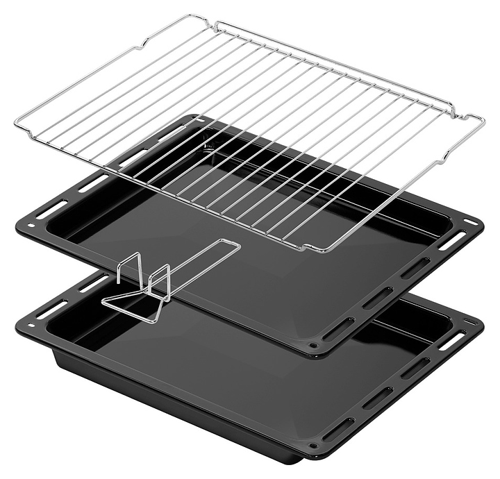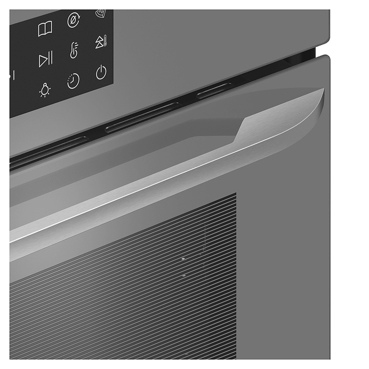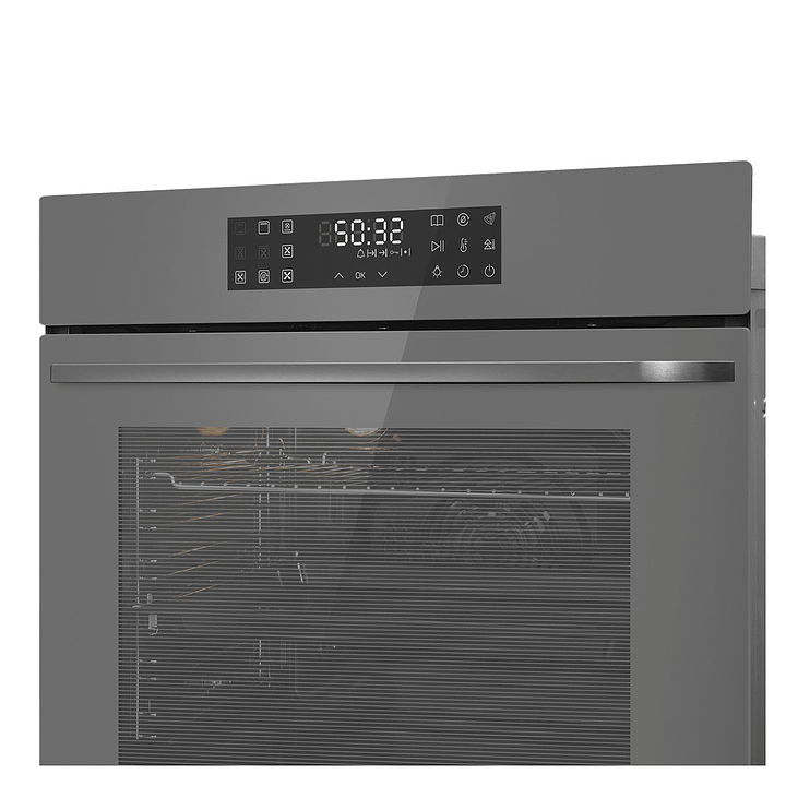 Встраивамый электрический духовой шкаф Maunfeld EOEH7614LGR предназначен для приготовления большого ассортимента блюд в домашних условиях. Модель оснащена камерой с расположенными в задней стенке кольцевым нагревательным элементом и вентилятором, верхним и нижним нагревательными элементами, верхним грилем, 2 боковыми стойками с 6 уровнями направляющих для противней, откидной дверью со смотровым окном, горизонтальной рукояткой, кабелем питания с вилкой, расположенной в верхней части фронта панелью управления с сенсорными функциональными клавишами и информативным дисплеем с белой подсветкой индикации. Корпус выполнен из высококачественной стали, фронт с покрытием светло-серого цвета и полным остеклением без винтового крепежа прозрачным закаленным стеклом, боковые стойки, телескопические направляющие, решетка для гриля и прихват – из стали с хромированной поверхностью, противни – из стали с эмалированным покрытием, рукоятка – из металла с матовой поверхностью цвета нержавеющей стали.
