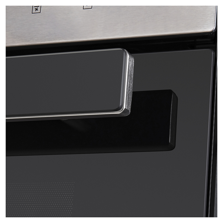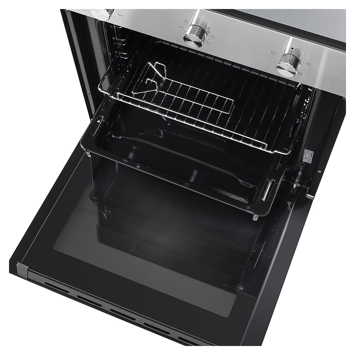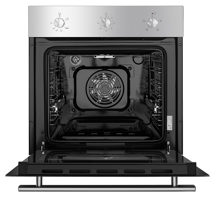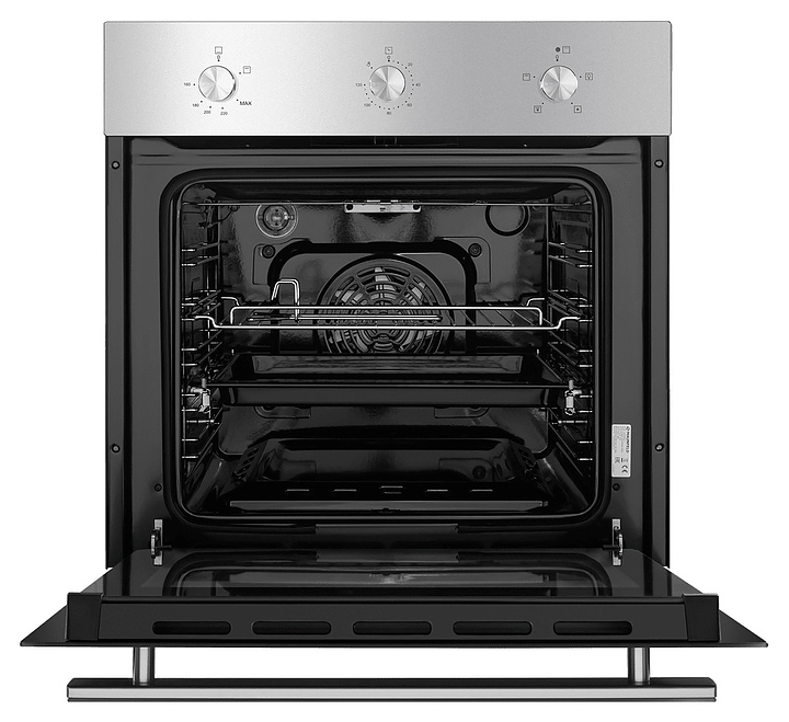Встраиваемый комбинированный духовой шкаф Maunfeld EOGC604S предназначен для приготовления большого ассортимента блюд в домашних условиях. Модель оснащена камерой с равположенным в задней стенке вентилятором, газовой горелкой снизу, верхним электрическим грилем, 2 боковыми стойками с 5 уровнями направляющих для противней, откидной дверью со смотровым окном и уплощенной горизонтальной рукояткой, кабелем питания с евровилкой и электромеханической панелью управления с 3 поворотными цилиндрическими переключателями. Корпус выполнен из высококачественной стали, дверь черного цвета с полным остеклением без винтового крепежа термостойким закаленным стеклом Schott (Германия) с дымчатой тонировкой, верхняя фронтальная панель – из металла с поверхностью цвета нержавеющей стали, боковые стойки, направляющие, решетка для гриля и прихват – из металла с хромированной поверхностью, противень – из металла с эмалированной поверхностью, фурнитура – из металла с поверхностью цвета нержавеющей стали, рукоятка с черным фронтальным остеклением. В комплект поставки входят универсальный противень, решетка для гриля с ограничителем для емкостей, прихват для противней, инструкция по эксплуатации, гарантийный талон и заводская упаковка. Особенности: