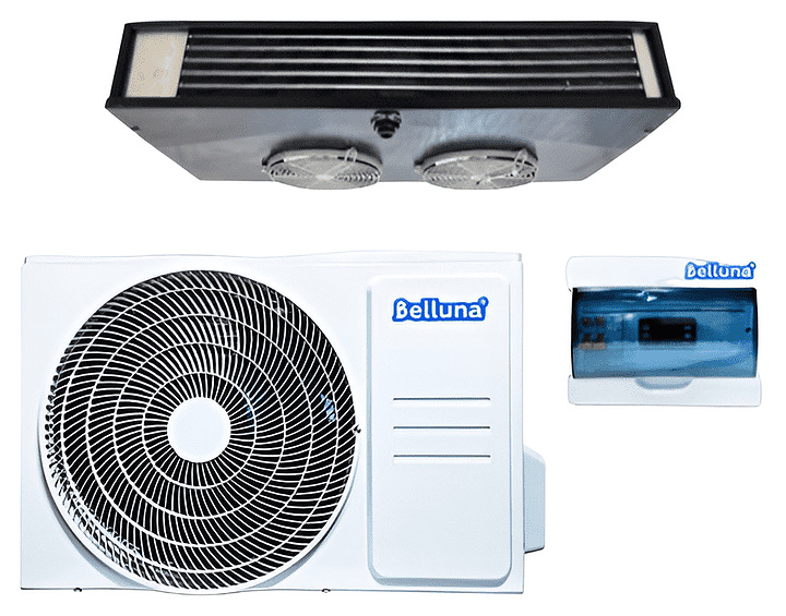 Холодильная сплит-система Belluna U101 Black Slim используется на предприятиях общественного питания, торговли и других объектах различных отраслей для поддержания необходимого температурного режима в соответствующей холодильной камере. Модель состоит из наружного блока, внутреннего блока – воздухоохладителя и выносного щита управления. Наружный блок имеет корпус, теплообменник, двигатель с крыльчаткой, соленоид перепуска компрессора, смотровое окно, фильтр осушитель, запорные вентили, сервисные порты давления, автоматику, защитную решетку и крышку для вентилей, воздухоохладитель оснащен системой вентиляторов с защитными решетками, щит – откидной прозрачной защитной крышкой, корпус воздухоохладителя окрашен в черно-серый цвет (RAL 7021). Особенности: