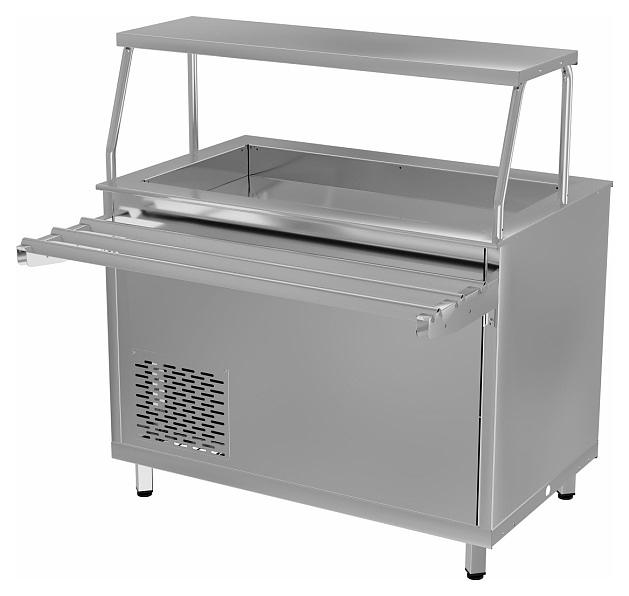 Напольный холодильный прилавок Gabino MRB-10/7 используется в составе линии раздачи на предприятиях общественного питания для демонстрации, охлаждения и кратковременного хранения готовых закусок и напитков. Модель оснащена охлаждаемой ванной и направляющими для подносов. Изделие выполнено из нержавеющей стали. Особенности: