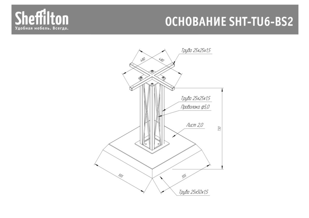 Подстолье Sheffilton SHT-TU6-BS2 используется в качестве опоры для столешницы обеденного столика в кафе, ресторанах и на других предприятиях общественного питания и торговли. Модель имеет устойчивую конструкцию из несущей крестовины, состоящей из 4 труб квадратного сечения и прутка опорной стойки и усиленного квадратного основания на 4 ножках. Компоненты выполнены из металла с покрытием порошковой краской черного цвета, несущая крестовина – из профиля трубы квадратного сечения, заглушки крестовины – из черного пластика, упаковка – из картона и полиэтилена. Цена указана за 1 шт. Особенности: