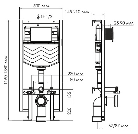 Система инсталляции Wasserkraft Vils 56TLT.010.ME.MG02 предназначена для установки подвесных унитазов. Внешняя рама выполнена из алюминия. Комплектация: