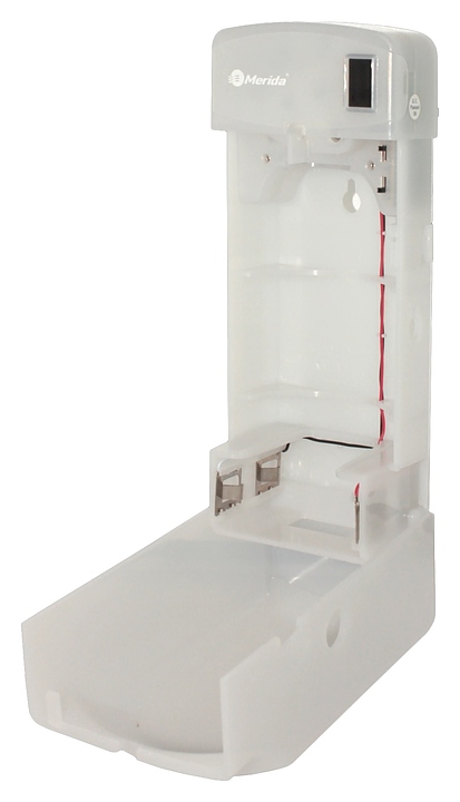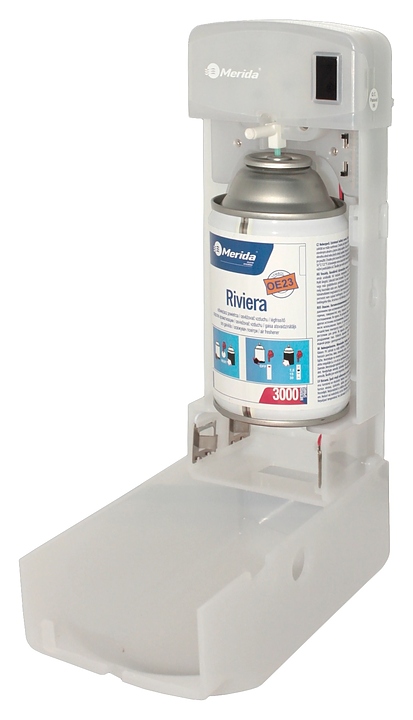 Автоматический диспенсер Merida HARMONY GHB704 предназначен для распыления освежителя воздуха в общественных санитарных узлах офисов, предприятий общественного питания, медицинских учреждений и других мест массового пребывания. Модель оснащена запираемой на ключ откидной крышкой. Вертикально ориентированный корпус обтекаемой формы выполнен из АБС пластика с глянцевой белой поверхностью, упаковка – из гофрокартона. Особенности: