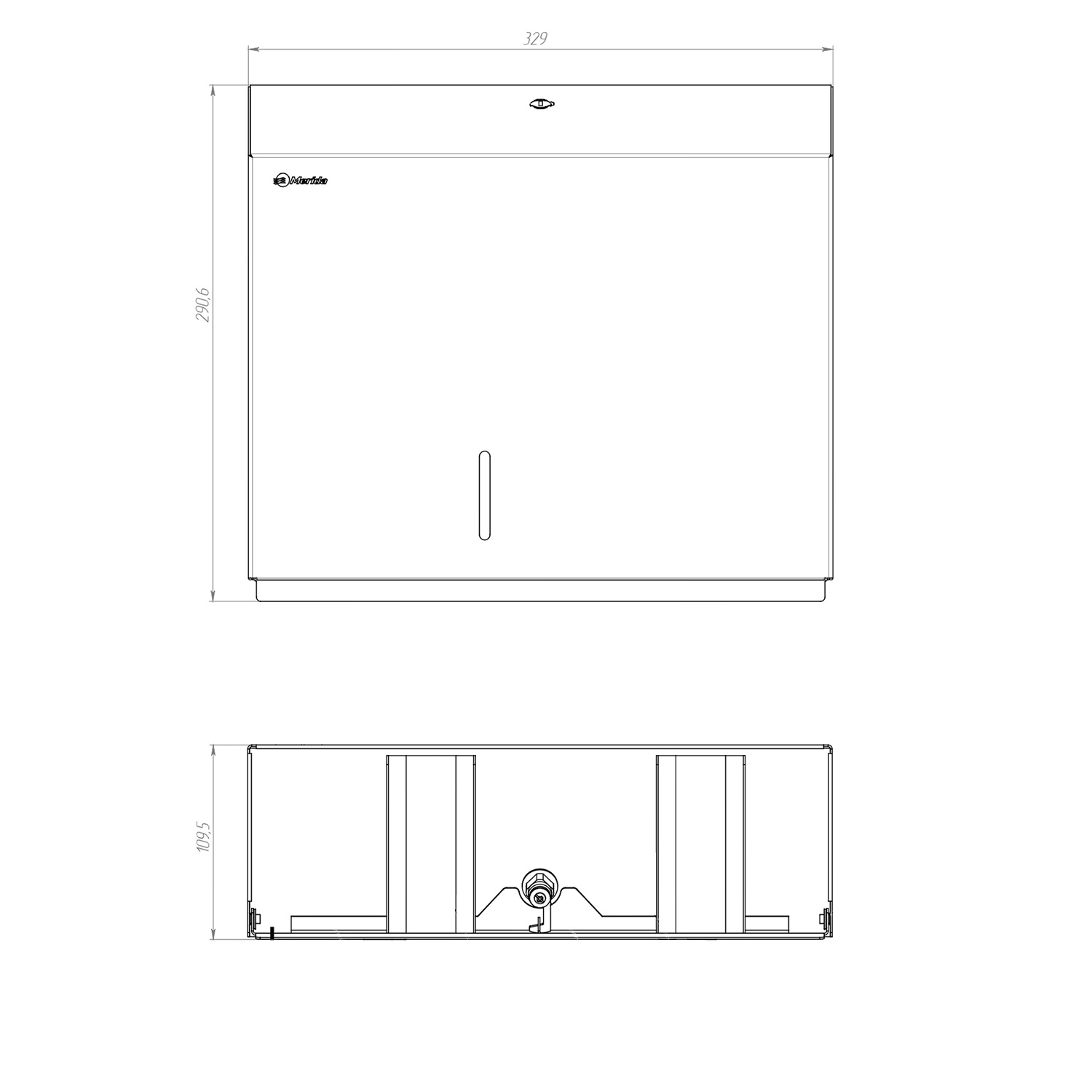 Диспенсер Merida STELLA R DUO BSC202.R предназначен для размещения и подачи рулонной туалетной бумаги в общественных санитарных узлах гостиниц, предприятий общественного питания, медицинских учреждений и других мест массового пребывания. Модель оснащена запираемым на ключ барабанным замком и удобным окошком индикации наличия бумаги. Вертикально ориентированный корпус прямоугольного сечения изготовлен из нержавеющей стали с матовым покрытием порошковой краской черного цвета, упаковка – из гофрокартона. Особенности: