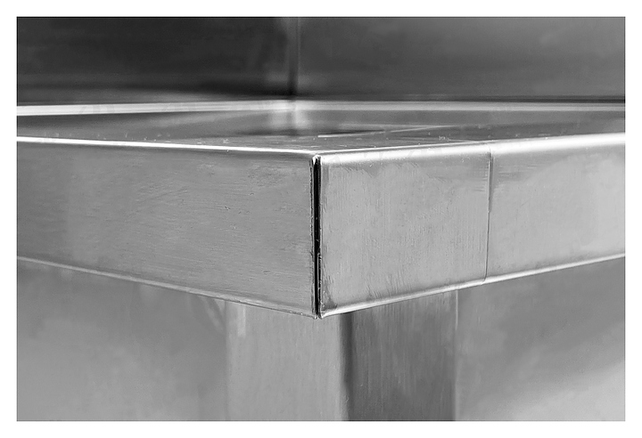 Моповая ванна Mecon Norma Inox ВМСн предназначена для мытья уборочного инвентаря на предприятиях пищевой промышленности, общественного питания и торговли. Модель оснащена верхней и нижней рамками, обвязкой, сварной мойкой и регулируемыми по высоте полиамидными опорами со стальными усиленными подпятниками. Ножки выполнены из гнутого углового профиля нержавеющей стали с дополнительными подгибами и базирующими пуклевками, рамки и обвязка - из углового профиля нержавеющей стали с базирующими пуклевками, моечное отделение - из шлифованной пищевой нержавеющей стали AISI 304, облицовка - из нержавеющей стали. В комплект поставки входят метизы для сборки. Особенности: