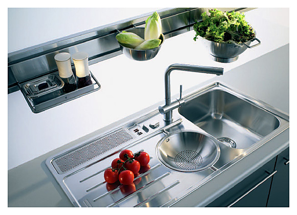 На выбор предлагаются более 30 дополнительных принадлежностей, которые превратят мойку в полноценный рабочий центр. Имеется три отдельных слива и две раздельных зоны для обсушки: стекающая вода никогда не попадает в большую чашу.
