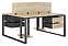 Офисный стол Кобор O1/2-80/120 black/natural на 2 рабочих места используется в офисных помещениях и кабинетах руководителей. Модель оснащена O-образными опорами. Каркас и опоры выполнены из металла, выкрашенного в цвет черный муар (RAL9005), столешница – из ламинированной древесно-стружечной плиты (ЛДСП) цвета натуральный дуб (H1180 ST37). Дополнительные характеристики:
