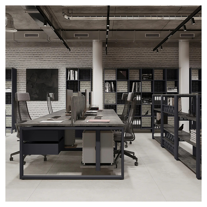 Офисный стол Кобор O1/2-100/140 graphite/chicago на 2 рабочих места используется в офисных помещениях и кабинетах руководителей. Модель оснащена O-образными опорами. Каркас и опоры выполнены из металла, выкрашенного в цвет графит муар (RAL7024), столешница – из ламинированной древесно-стружечной плиты (ЛДСП) цвета бетон чикаго (F186 ST9). Дополнительные характеристики: