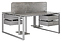 Офисный стол Кобор O1/2-80/120 aluminum/chicago на 2 рабочих места используется в офисных помещениях и кабинетах руководителей. Модель оснащена O-образными опорами. Каркас и опоры выполнены из металла, выкрашенного в цвет алюминиевый металлик (RAL9006), столешница – из ламинированной древесно-стружечной плиты (ЛДСП) цвета бетон чикаго (F186 ST9). Дополнительные характеристики: