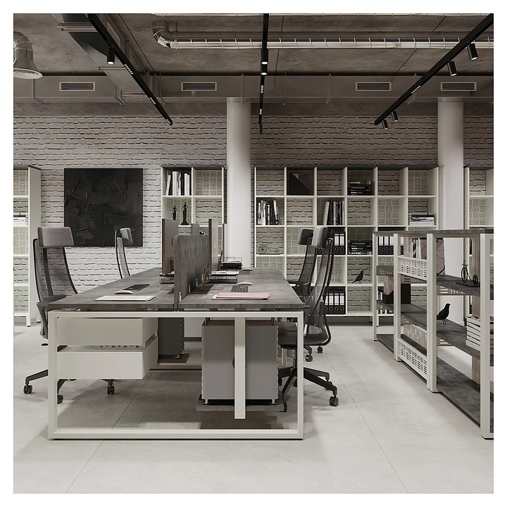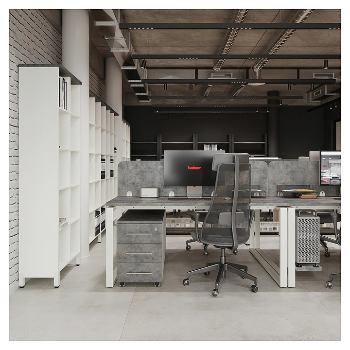 Офисный стол Кобор O1/2-80/140 white/chicago на 2 рабочих места используется в офисных помещениях и кабинетах руководителей. Модель оснащена O-образными опорами. Каркас и опоры выполнены из металла, выкрашенного в цвет белый муар (RAL9016), столешница – из ламинированной древесно-стружечной плиты (ЛДСП) цвета бетон чикаго (F186 ST9). Дополнительные характеристики:
