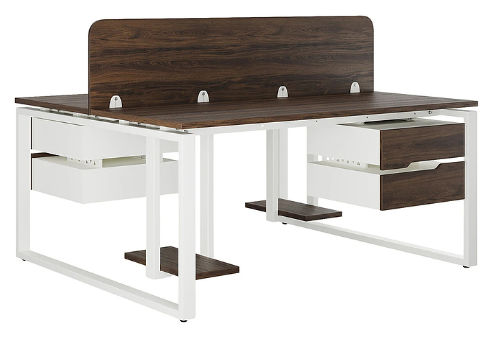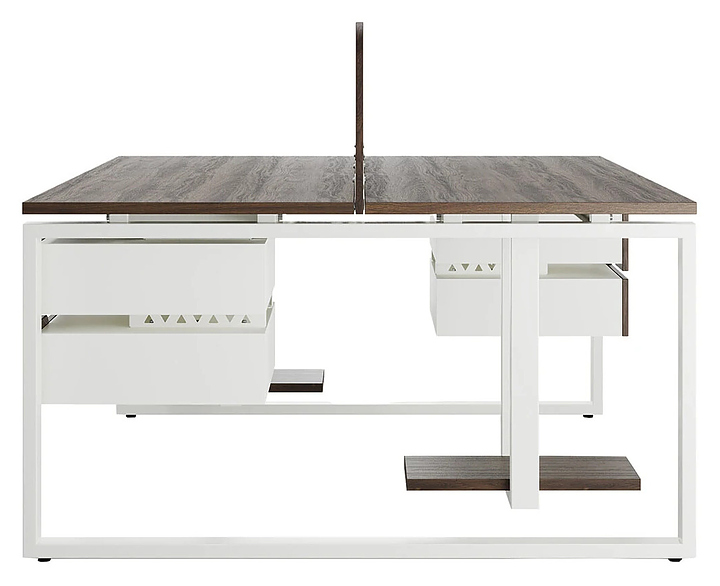 Офисный стол Кобор O1/2-100/140 white/charlston на 2 рабочих места используется в офисных помещениях и кабинетах руководителей. Модель оснащена O-образными опорами. Каркас и опоры выполнены из металла, выкрашенного в цвет белый муар (RAL9016), столешница – из ламинированной древесно-стружечной плиты (ЛДСП) цвета дуб чарльстон (H3154 ST36). Дополнительные характеристики: