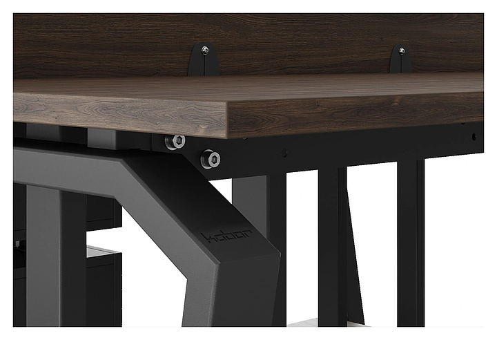 Офисный стол Кобор TB/2-100/140 black/charlston на 2 рабочих места используется в офисных помещениях и кабинетах руководителей. Модель оснащена опорами в форме обратной трапеции со скошенными верхними углами. Каркас и опоры выполнены из металла, выкрашенного в цвет черный муар (RAL9005), столешница – из ламинированной древесно-стружечной плиты (ЛДСП) цвета дуб чарльстон (H3154 ST36). Дополнительные характеристики: