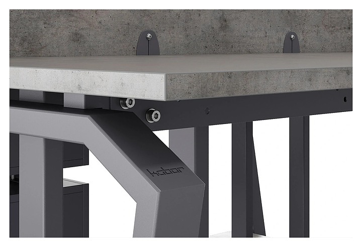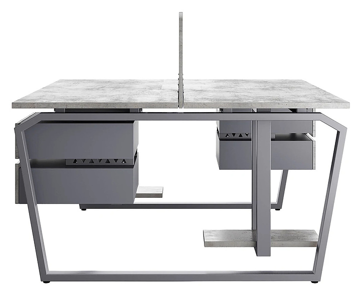Офисный стол Кобор TB/2-80/140 graphite/chicago на 2 рабочих места используется в офисных помещениях и кабинетах руководителей. Модель оснащена опорами в форме обратной трапеции со скошенными верхними углами. Каркас и опоры выполнены из металла, выкрашенного в цвет графит муар (RAL7024), столешница – из ламинированной древесно-стружечной плиты (ЛДСП) цвета бетон чикаго (F186 ST9). Дополнительные характеристики: