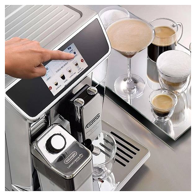 Автоматическая кофемашина Delonghi PrimaDonna Elite используется на предприятиях общественного питания, в офисах, отелях и частных квартирах для приготовления кофе эспрессо, капучино, латте, латте маккиато и подогрева молока. Модель оснащена сенсорным цветным TFT-дисплеем 4.3" и встроенной кофемолкой. Корпус и жернова кофемолки выполнены из металла. Особенности: