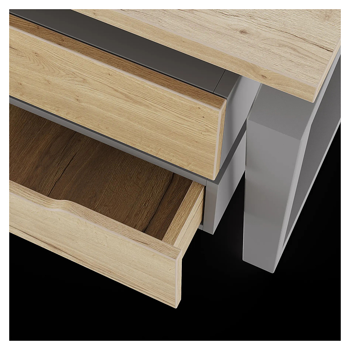 Офисный стол Кобор TB/2-80/140 aluminum/natural на 2 рабочих места используется в офисных помещениях и кабинетах руководителей. Модель оснащена опорами в форме обратной трапеции со скошенными верхними углами. Каркас и опоры выполнены из металла, выкрашенного в цвет алюминиевый металлик (RAL9006), столешница – из ламинированной древесно-стружечной плиты (ЛДСП) цвета натуральный дуб (H1180 ST37). Дополнительные характеристики: