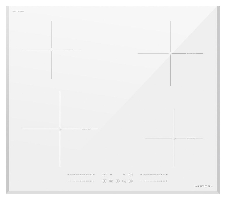 Индукционная варочная панель HiSTORY HI6440 BWH предназначена для приготовления большого ассортимента блюд в домашних условиях. Принцип работы основан на непосредственном нагреве металлической посуды создаваемыми высокочастотным магнитным полем индуцированными вихревыми токами. Модель оснащена 4 варочными зонами, кабелем питани без вилки, сенсорной панелью управления и 5 светодиодными цифровыми дисплеями с красной подсветкой индикации. Рабочая поверхность выполнена из высококачественной износостойкой стеклокерамики EuroKera (Франция) белого цвета с фацетированными фронтальной и боковыми кромками.