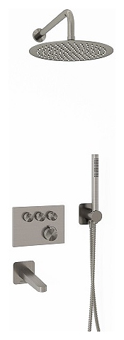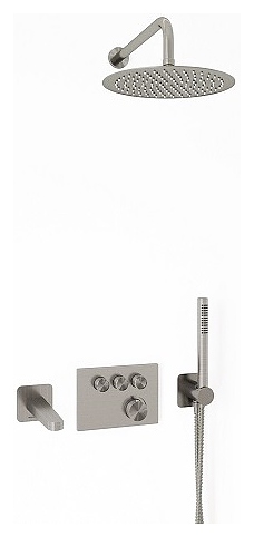 Встраиваемый душевой комплект Wasserkraft Wern 4200 A4258.097.121.275.100.276.298 Thermo используется в ванных комнатах. Модель оснащена термостатическим картриджем, обеспечивающим контроль и точность при выборе напора и температуры воды. Изделие выполнено из латуни, отличающейся прочностью, долговечностью и устойчивостью к перепадам температур. Комплект поставки: