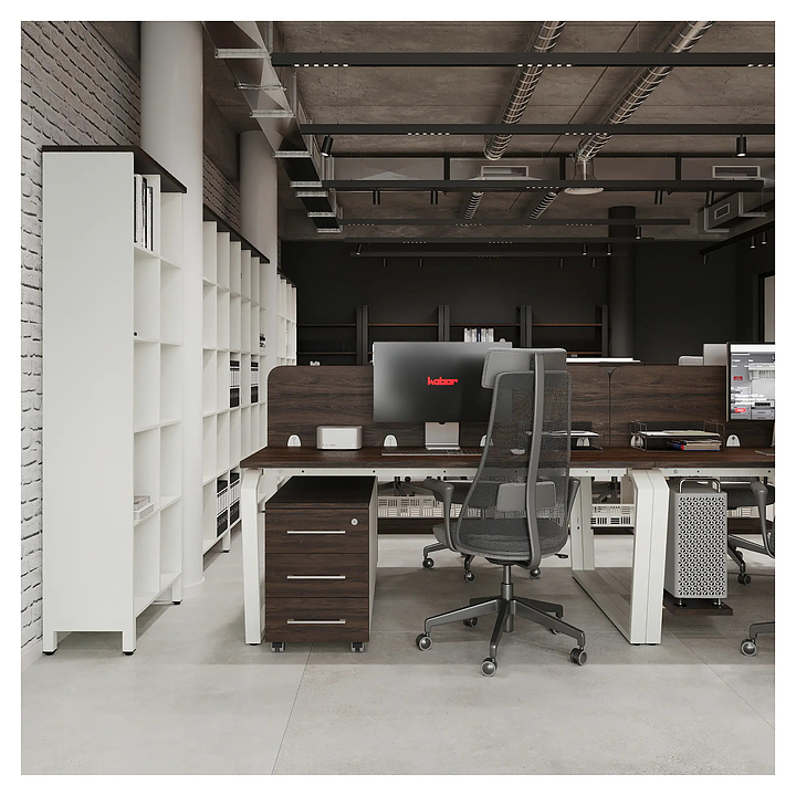 Офисный стол Кобор TB/2-120/120 white/charlston на 2 рабочих места используется в офисных помещениях и кабинетах руководителей. Модель оснащена опорами в форме обратной трапеции со скошенными верхними углами. Каркас и опоры выполнены из металла, выкрашенного в цвет белый муар (RAL9016), столешница – из ламинированной древесно-стружечной плиты (ЛДСП) цвета дуб чарльстон (H3154 ST36). Дополнительные характеристики: