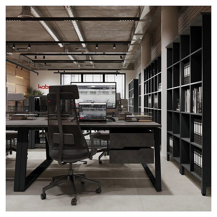 Офисный стол Кобор TR/2-80/120 black/chicago на 2 рабочих места используется в офисных помещениях и кабинетах руководителей. Модель оснащена опорами в форме трапеции. Каркас и опоры выполнены из металла, выкрашенного в цвет черный муар (RAL9005), столешница – из ламинированной древесно-стружечной плиты (ЛДСП) цвета бетон чикаго (F186 ST9). Дополнительные характеристики: