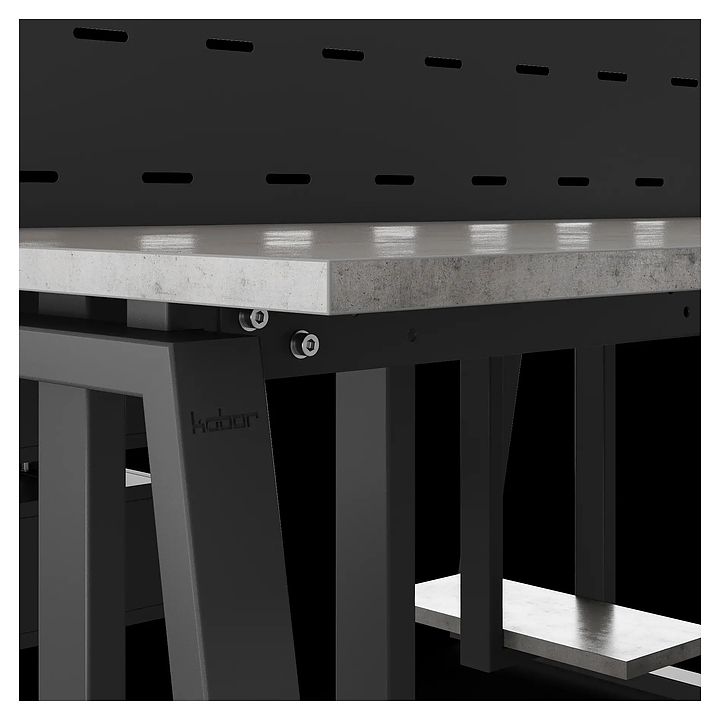 Офисный стол Кобор TR/2-100/140 black/chicago на 2 рабочих места используется в офисных помещениях и кабинетах руководителей. Модель оснащена опорами в форме трапеции. Каркас и опоры выполнены из металла, выкрашенного в цвет черный муар (RAL9005), столешница – из ламинированной древесно-стружечной плиты (ЛДСП) цвета бетон чикаго (F186 ST9). Дополнительные характеристики: