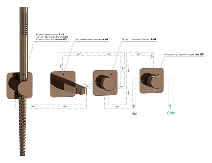 Встраиваемый комплект для ванны Wasserkraft Paar 8800 A8851.309.311.290.292.291 золото розовое